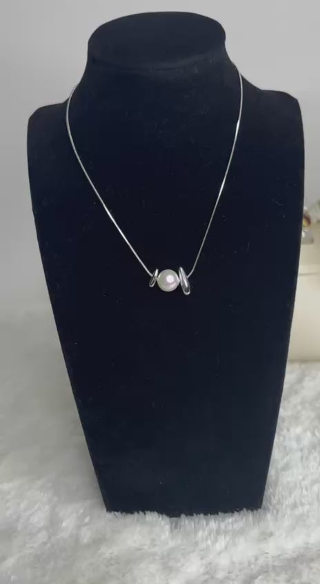Un bijou minimaliste d’une élégance absolue. Une perle nacrée trône au centre d’un fil argenté fin, maintenue par deux cercles lisses qui l’embrassent délicatement. Ce collier évoque la pureté, la grâce et la royauté discrète. Un indispensable du chic intemporel.